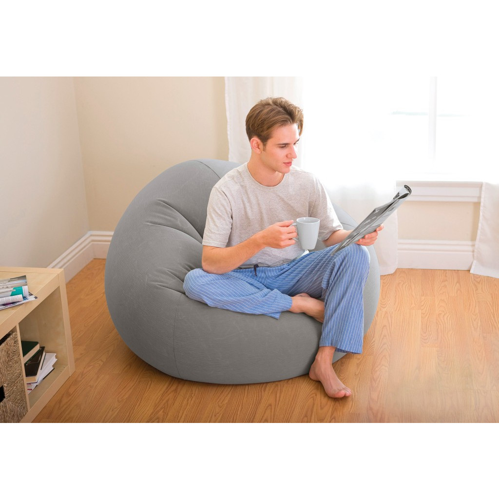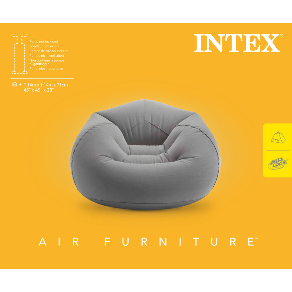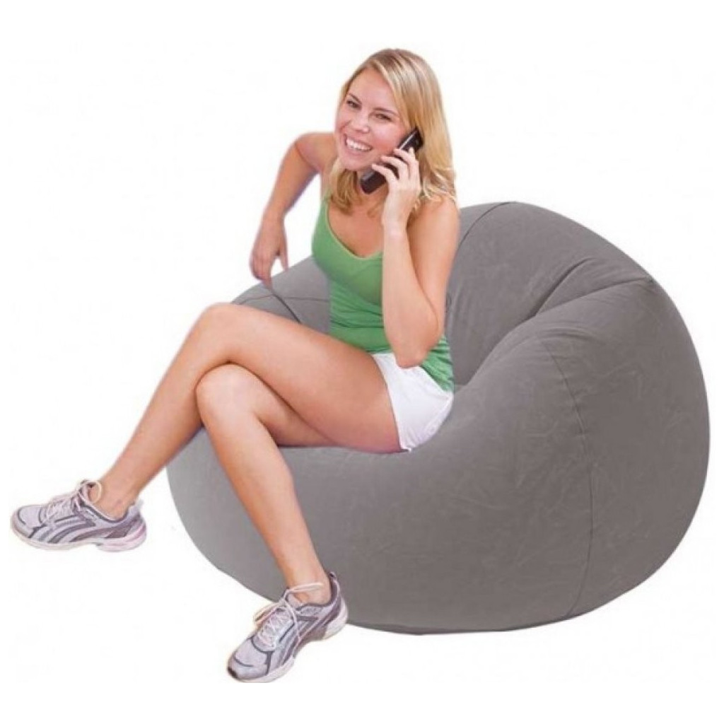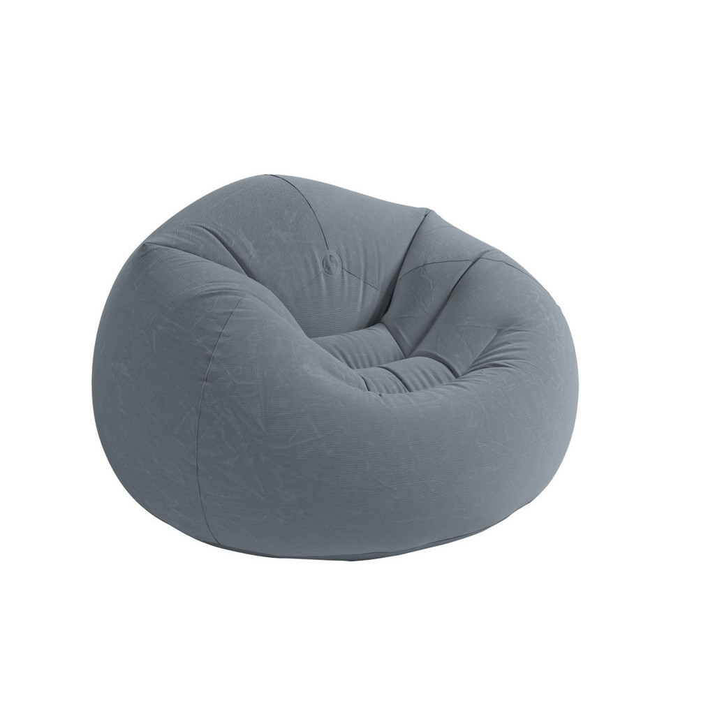 Skvělý sedací vak bez jakékoliv výplně. Stačí jednoduše rozvinout a nafouknout a během několika minut máte křeslo ideální pro lenošení, studování či sledování filmů. Šedá neutrální barva v kombinaci s imitací manšestru dodává křeslu elegantní a luxusní vzhled, který udá nový rozměr každé místnosti. Základní rozměr křesla: 107 cm x 104 cm x 69 cm.