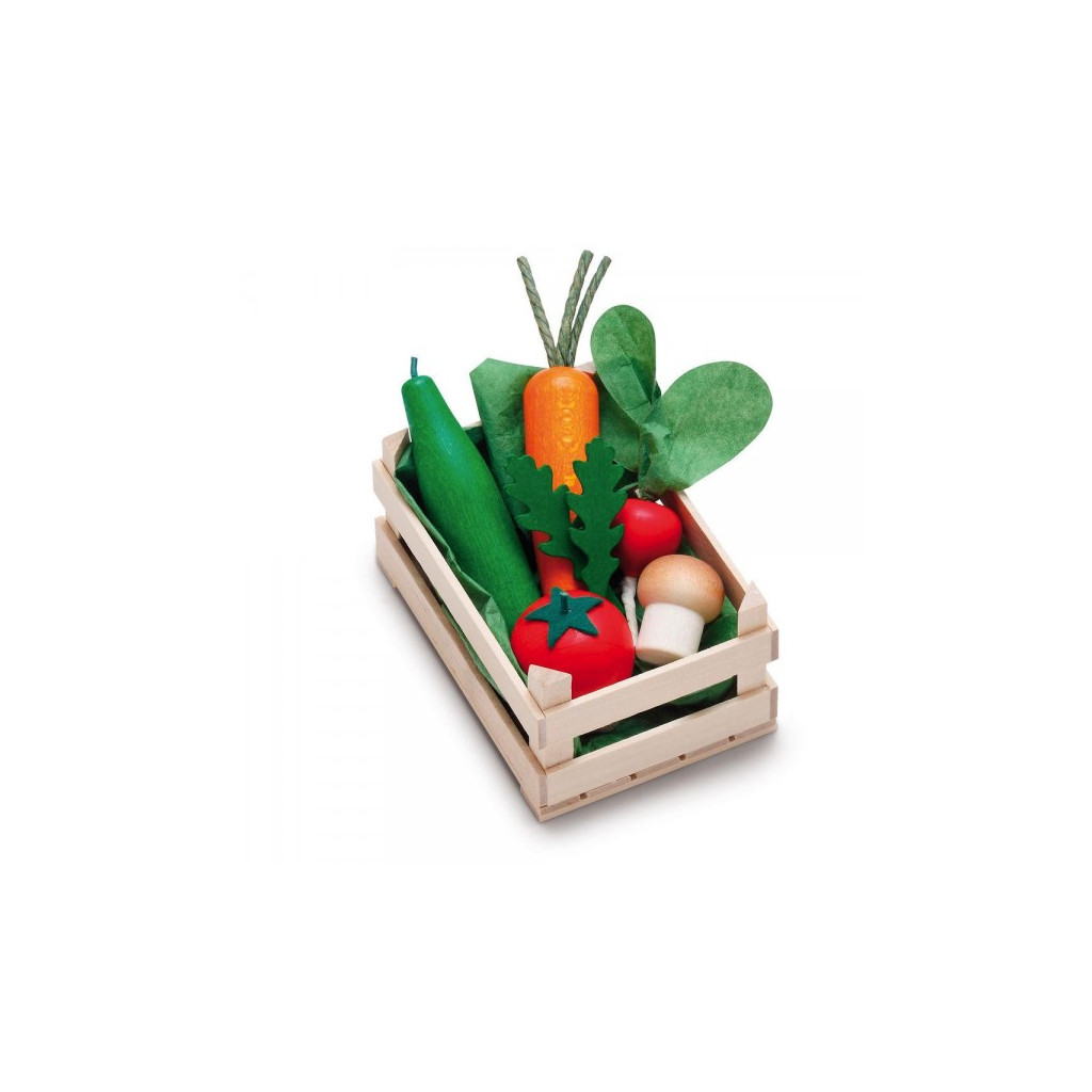 7 ks zeleniny z bukového dřeva v dřevěné přepravce. Přepravka, mrkev, rajče, ředkvička, okurka, houbička, dva lístky rukoly. Rozměry (d x š x v) cm / hmotnost: 12,2 x 8,3 x 6 / 160 g. Určeno pro věk: 3+. Dřevěné ovoce, zelenina, potraviny a drogerie na hraní, jako výbava do dětské prodejny a kuchyňky na doma i do školky. Pomáhá dítěti rozvíjet fantazii, kreativitu, komunikaci a jemnou motoriku. Skvělá hračka pro hru na obchůdek a vaření, která baví holky i kluky bez rozdílu. Z dětí se tak rázem může stát profesionální kuchař, prodavač, zákazník, farmář, pekař, zmrzlinář nebo kdokoliv je jen napadne. Všechny výrobky Erzi splňují standardy nejvyšší kvality a jsou výsledkem precizního řemeslného zpracování, jsou přísně testovány a certifikovány v Německu a odpovídají příslušným evropským normám. Upozornění: Tento výrobek je hračka, ne potravina. Není určeno dětem do 3 let, obsahuje malé vdechnutelné části. Uschovejte informace o výrobku a kontakt na výrobce.Doplňkové parametry