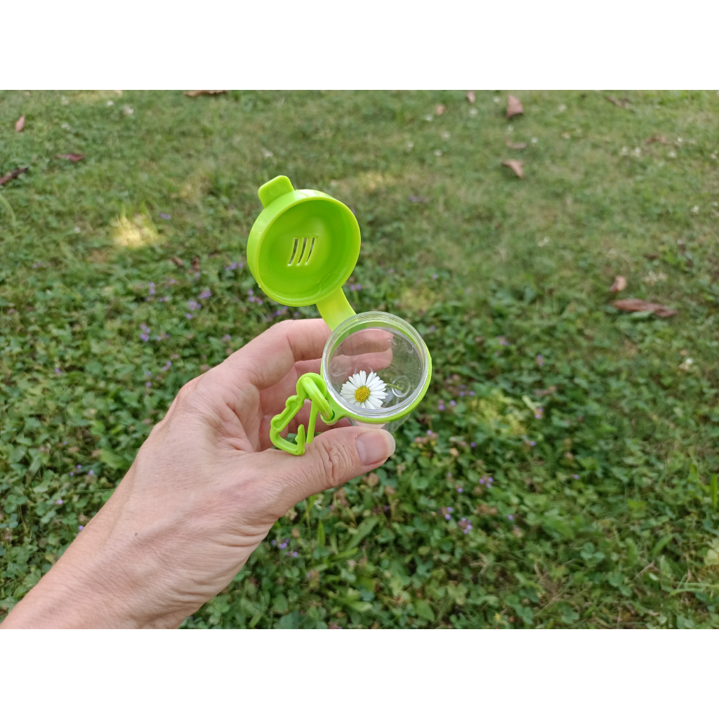 Kompletní set pro malé průzkumníky přírody, kde je vše pohromadě a na dosah ruky, je ideální ke zkoumání rostlin i živočichů. Síťka s rukojetí umožňuje bezpečný odchyt hmyzu, pinzetou lze uchopit broučky, larvy či kousky rostlin přesně a šetrně, nástroj s designem nůžek umožňuje snadné přemísťování malých živočichů i menších předmětů a průhledná nádobka s praktickou karabinkou poskytuje možnost krátkodobého pozorování chycených tvorů a zároveň snadné připevnění na batoh při výpravách za dobrodružstvím.