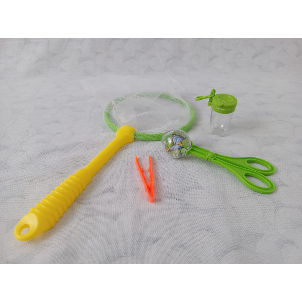 Obsahuje: 1x síťku na hmyz, 1x pinzetu, 1x nástroj s designem nůžek, 1x malou nádobku.