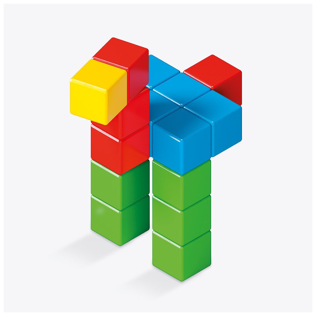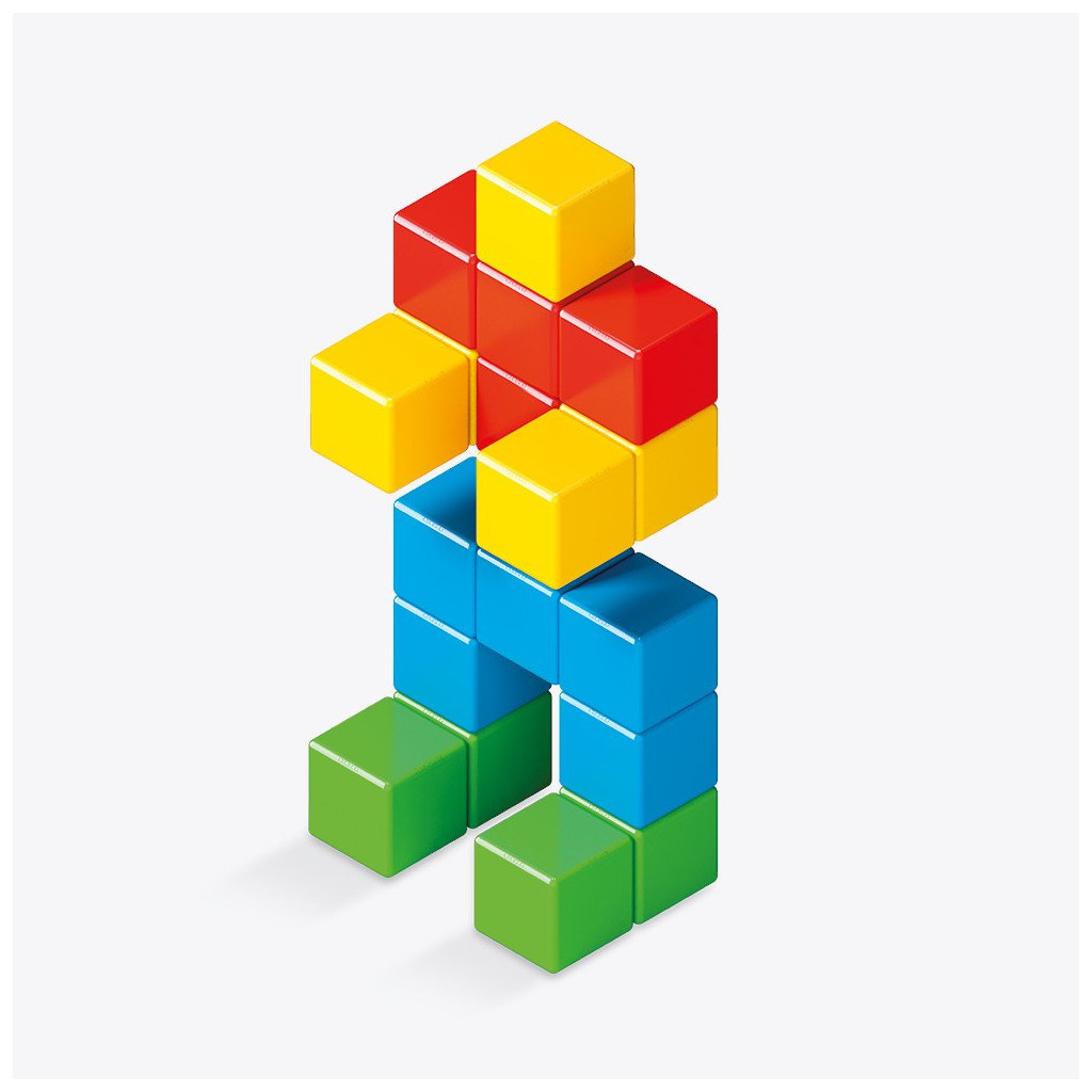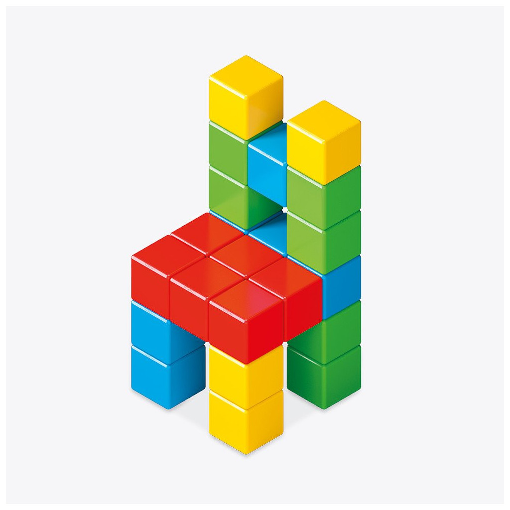 Obsahuje: 24 jednobarevných magnetických kostek (ve čtyřech barvách: zelená, červená, žlutá, modrá)