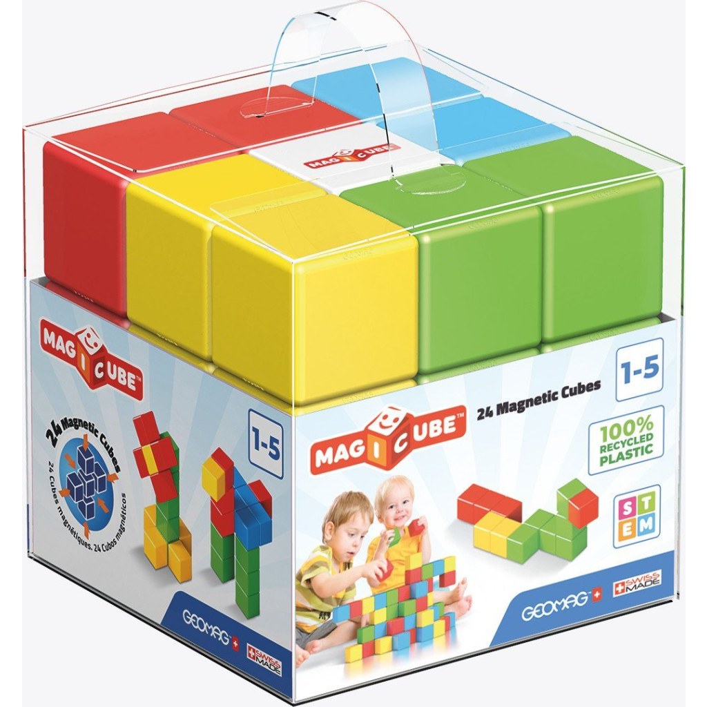 Magicube je plná kouzelných magnetických kostek umožňujících stavět věže, budovy i velké konstrukce snadno a rychle díky kvalitním magnetům bezpečně uschovaným uvnitř kostek. Děti se s GEOMAG Magicube učí formou hry, seznamují se se základními fyzikálními jevy, rozvíjejí svou představivost, prostorové vidění a konstrukční schopnosti. Jednoduché spojování kostek a jejich otáčení zvládnou i ty nejmenší děti. Na produktech GEOMAG Magicube naleznete označení STEM, což je vzdělávací koncept zaměřený na přírodní vědy, technologie, techniku a matematiku.