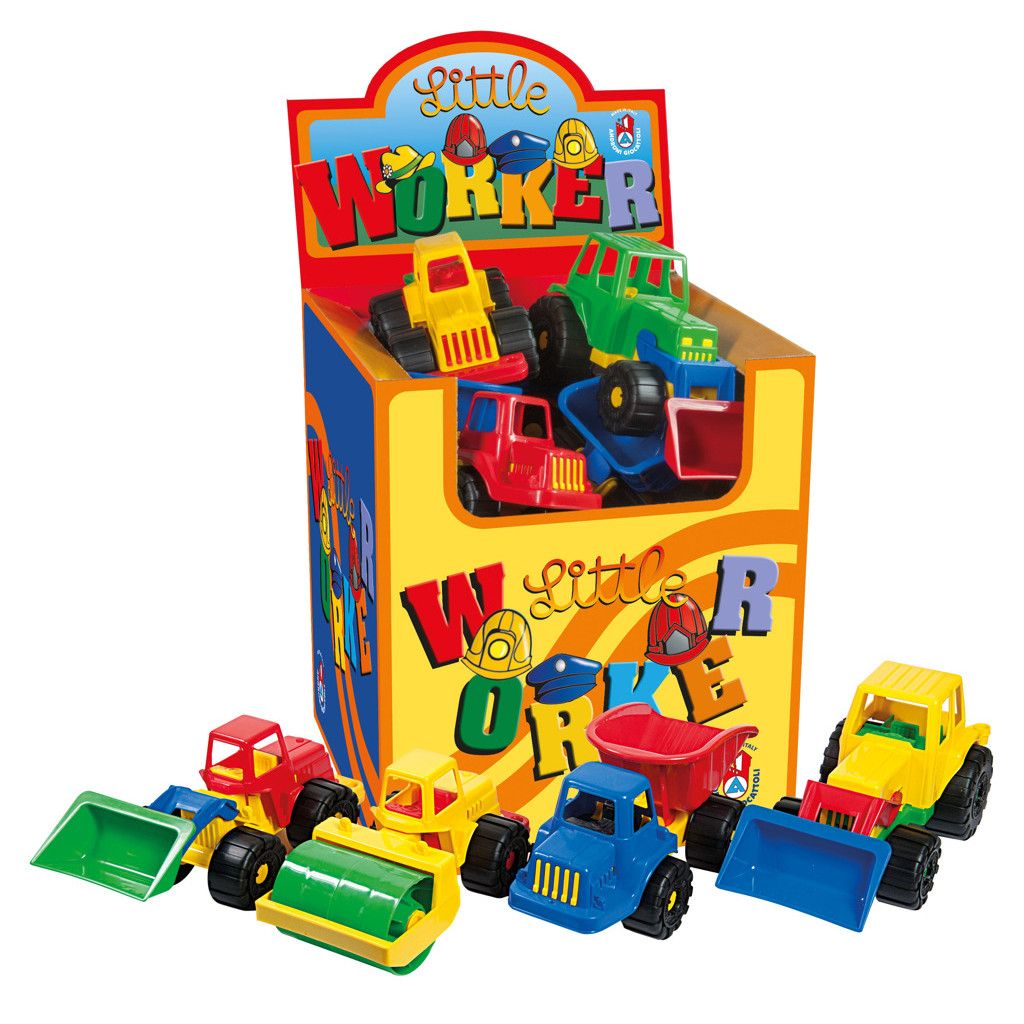 Plastové stavební autíčko v několika různých provedeních pro malé stavitele na pískoviště.