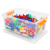 Průhledná konstrukční stavebnice plná geometrických tvarů.