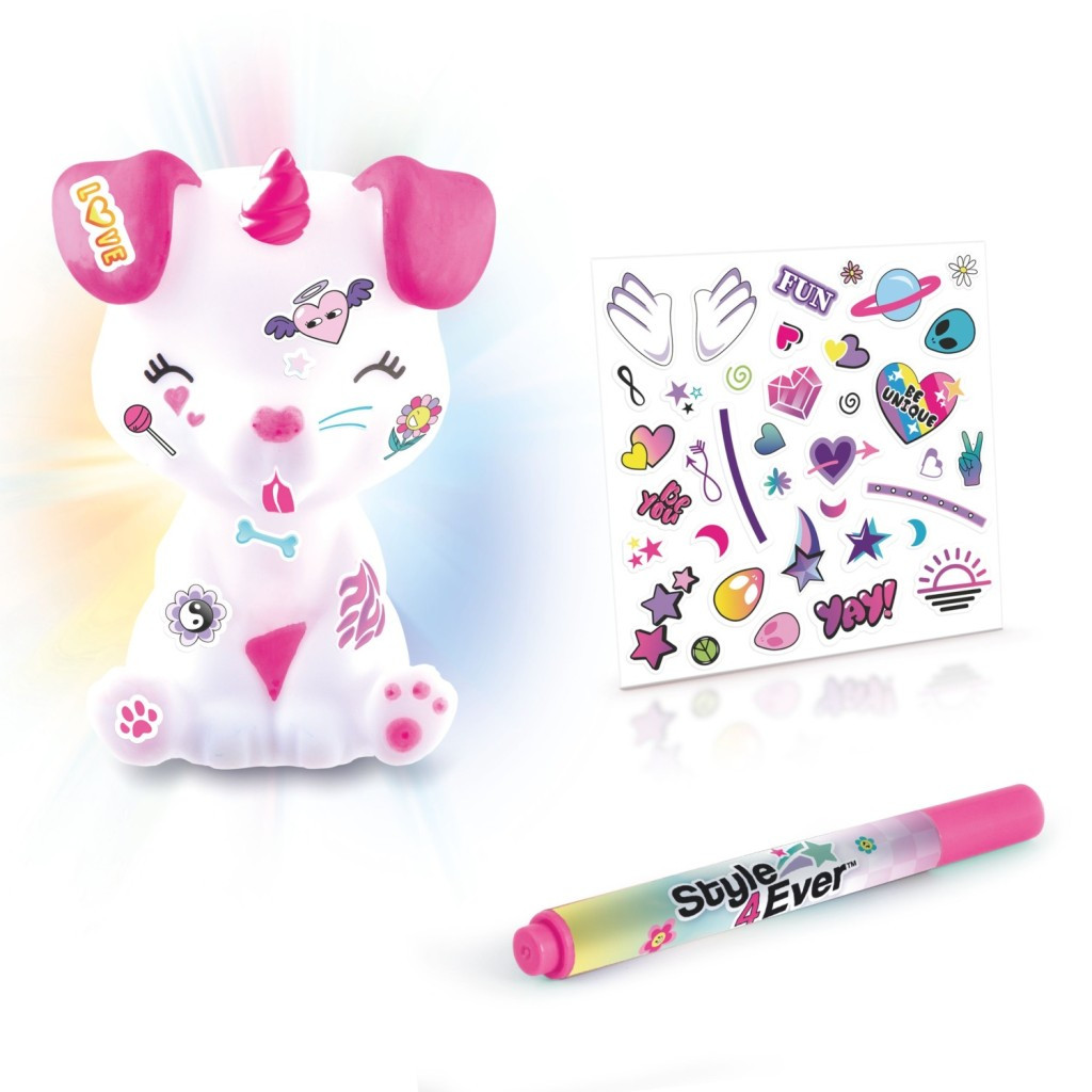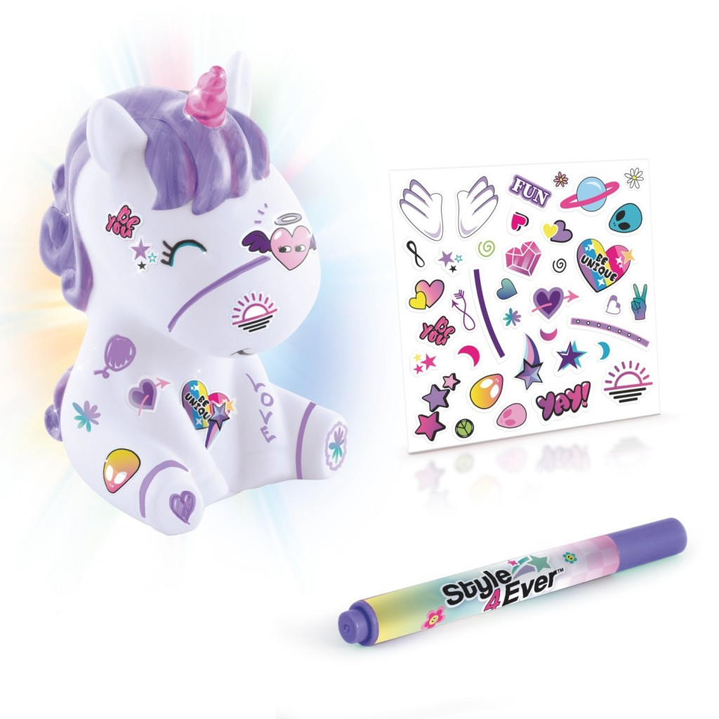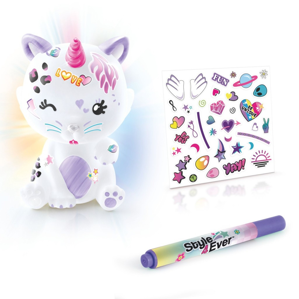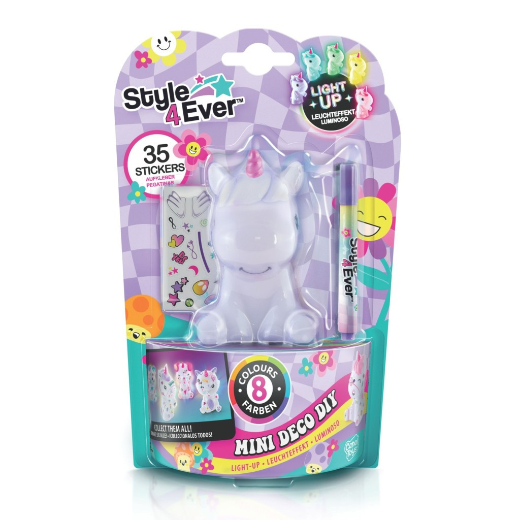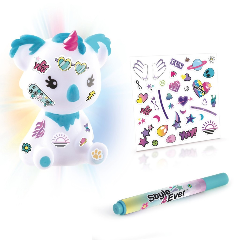 Oživte svůj prostor s touto jedinečnou svítící figurkou Style4Ever, která nabízí nejen krásné jemné světlo, ale také spoustu možností pro vlastní kreativitu! Na výběr je 6 různých assortů – 2 typy jednorožců, koala, pes a kočka. V každém balení naleznete samolepky a fix pro dozdobení figurky podle vašeho vlastního stylu. Vytvořte si tak jedinečný kousek, který bude dokonale ladit s vaším interiérem. Figurka svítí 8 barvami. Jsou potřeba baterie 3× LR54 (jsou součástí balení). Doporučeno pro děti od 6ti let.