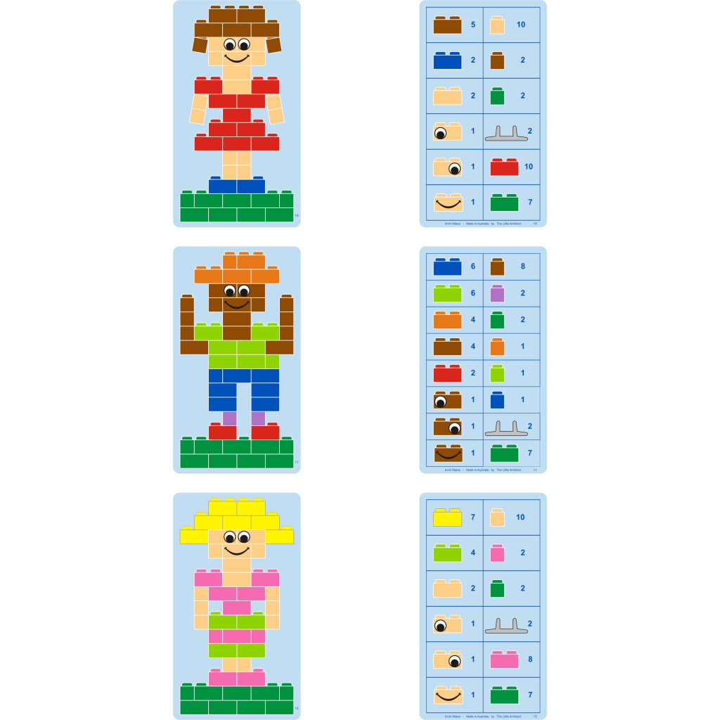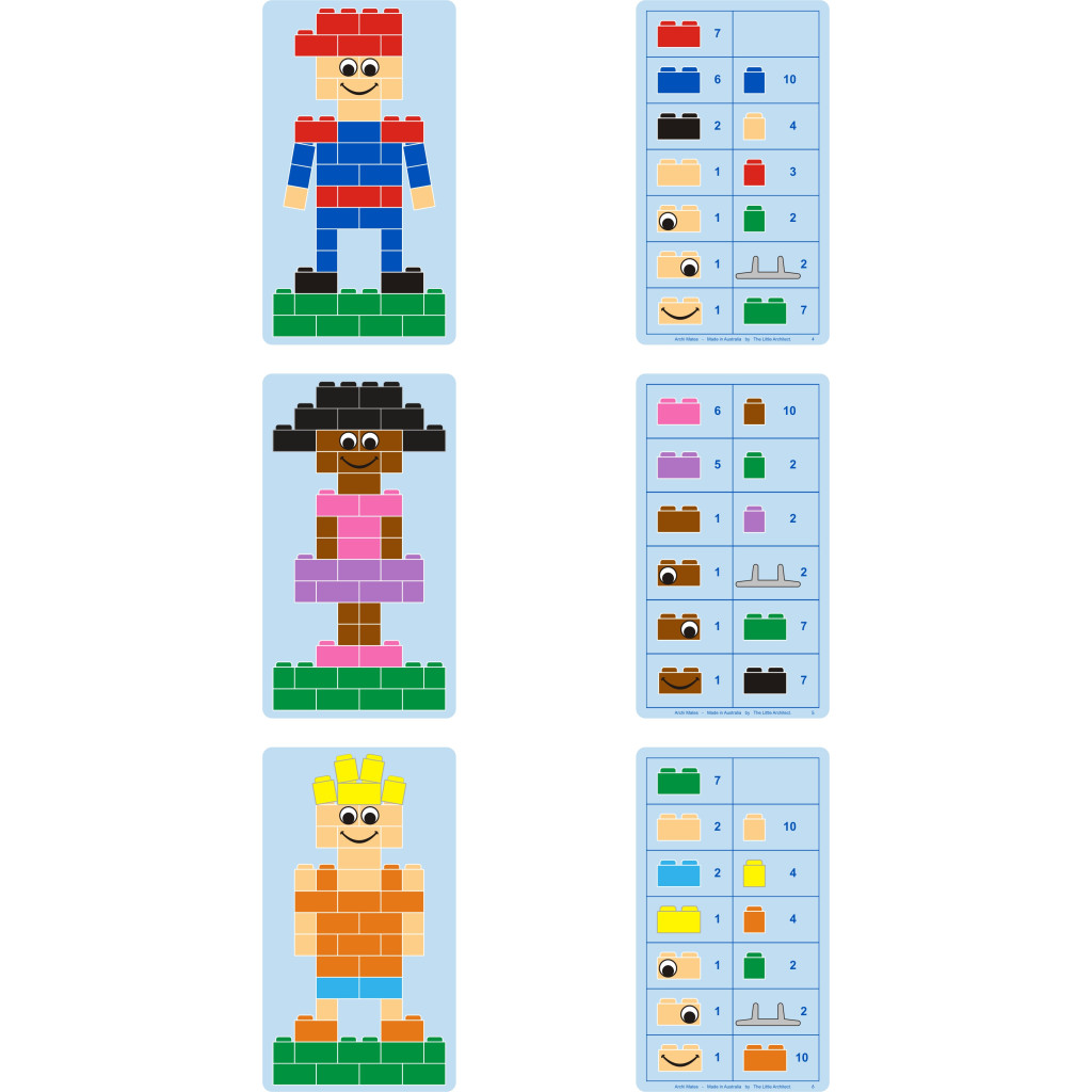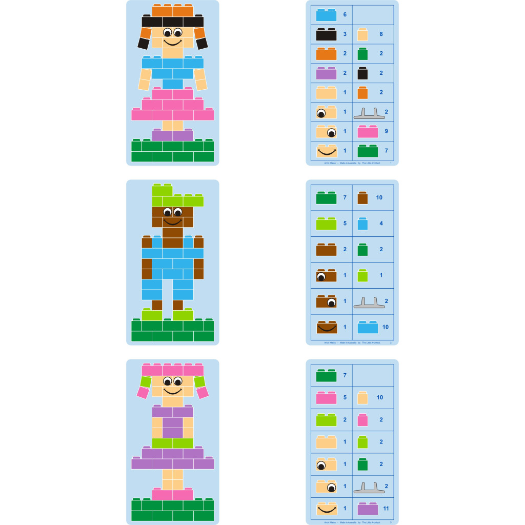 Univerzální stavebnice THE LITTLE ARCHITECT zavede děti do světa konstrukčního stavění. Prostřednictvím dílků ve tvaru cihliček, které se zasouvají do sebe, mohou vytvářet mnoho zajímavých staveb i postav snadno a rychle. Přiložené karty jsou dětem předlohou při stavění, cihličky si mohou malí stavitelé připravit předem podle barev a počtu kusů. Hrou se stavebnicí děti procvičují koordinaci oko-ruka, učí se pracovat systematicky, řešit problémy, rozeznávat barvy, seznamují se s čísly, rozvíjejí prostorovou představivost.