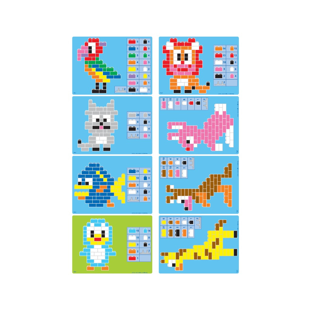 Obsahuje: 630 dílů, 8 karet/předloh ke stavění
