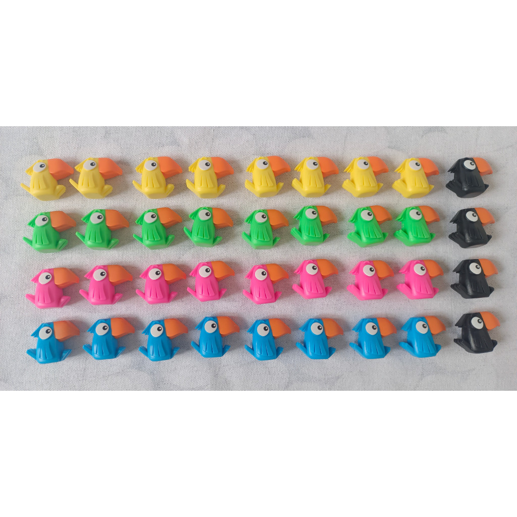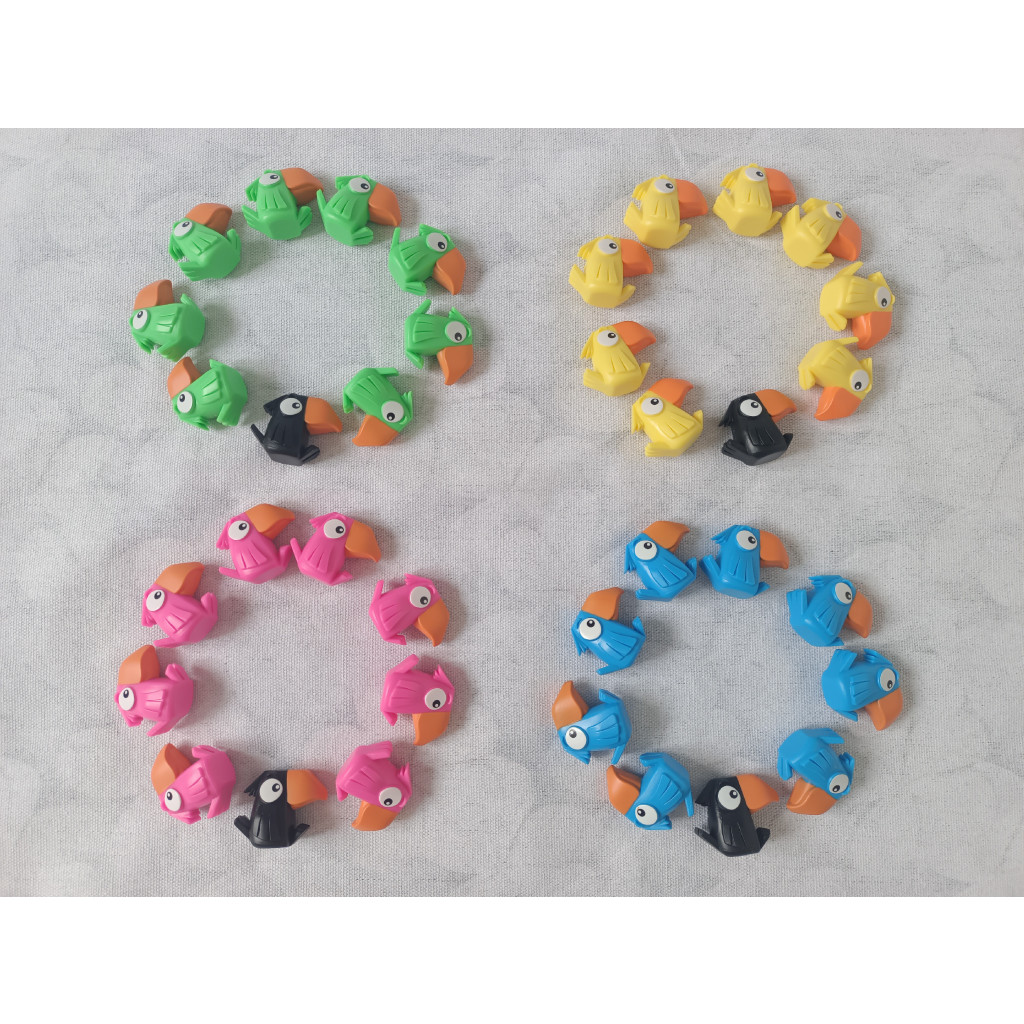 Obsahuje: 36 ptáčků (4 krabičky po 9 ptáčcích, v každé z krabiček jsou ptáčci jiné barvy)