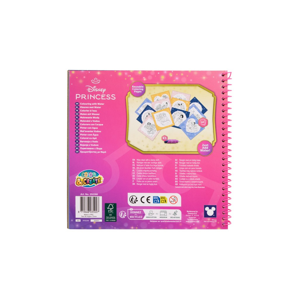 Kouzelná omalovánková kniha s motivy Disney princezen, která funguje na principu vodního malování. Stačí pouze naplnit přiložený štětec vodou a přetřít obrázek – barvy se samy objeví a vykouzlí nádhernou ilustraci.Opakovaně použitelná (po zaschnutí barvy opět zmizí a lze malovat znovu).Praktický formát 22,5 × 22,5 cm, ideální na cesty i domácí tvoření.