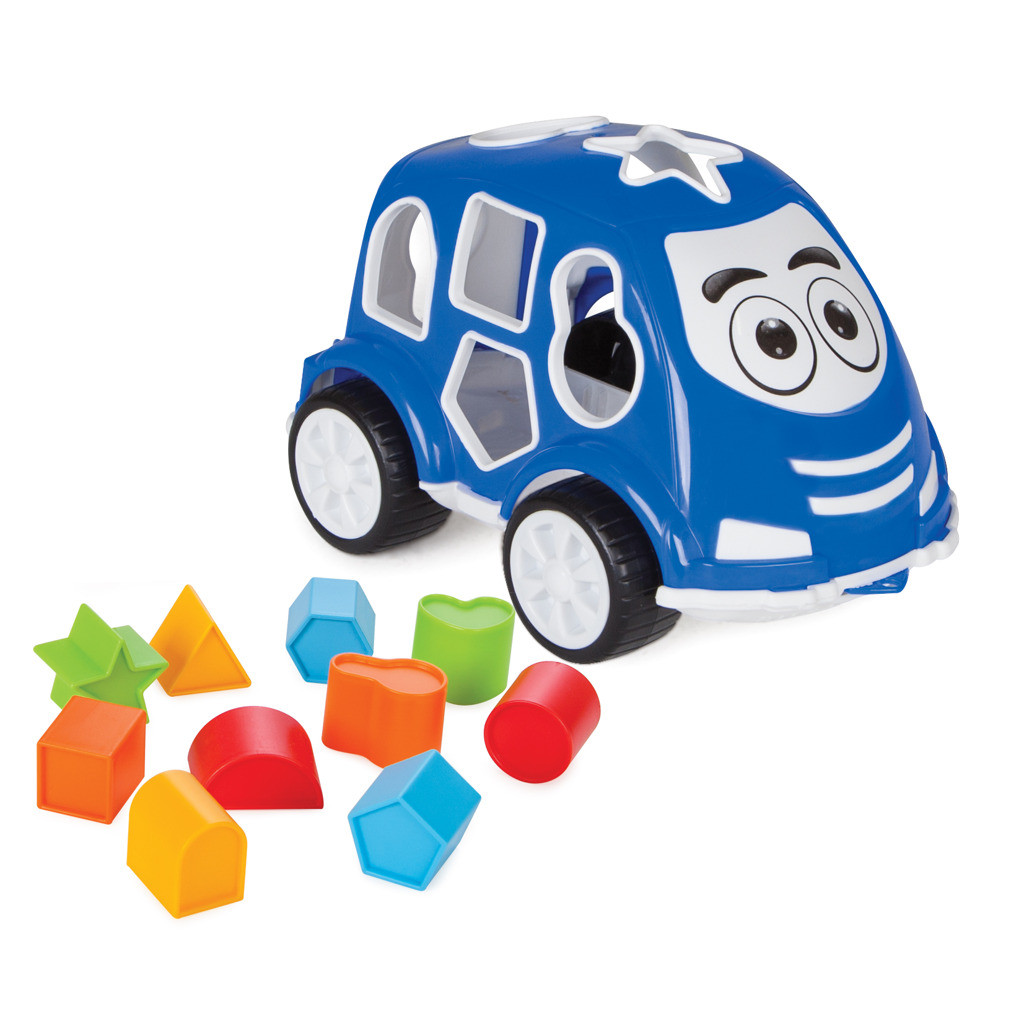 Vkládačka autíčko – učí děti jemnou motoriku, tvary a barvy. Elegantní a ergonomický design. Obsahuje 10 různých geomentrických tvarů. Splňuje nejpřístnější normy EU. Vyrobeno ze zdravotně nezávadného materiálu.