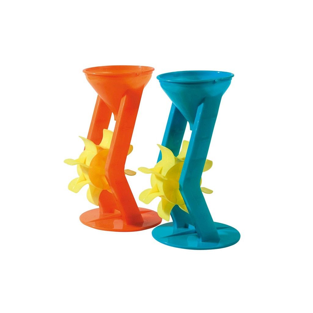 Vodní mlýnek je skvělou hračkou pro zábavu na pískovišti. Stačí si přinést konvičku s vodou na pískoviště a roztočit vrtuli. Ale nejen voda funguje! Do mlýnku můžete také dát písek, který také pohání vrtuli a přináší zábavu.