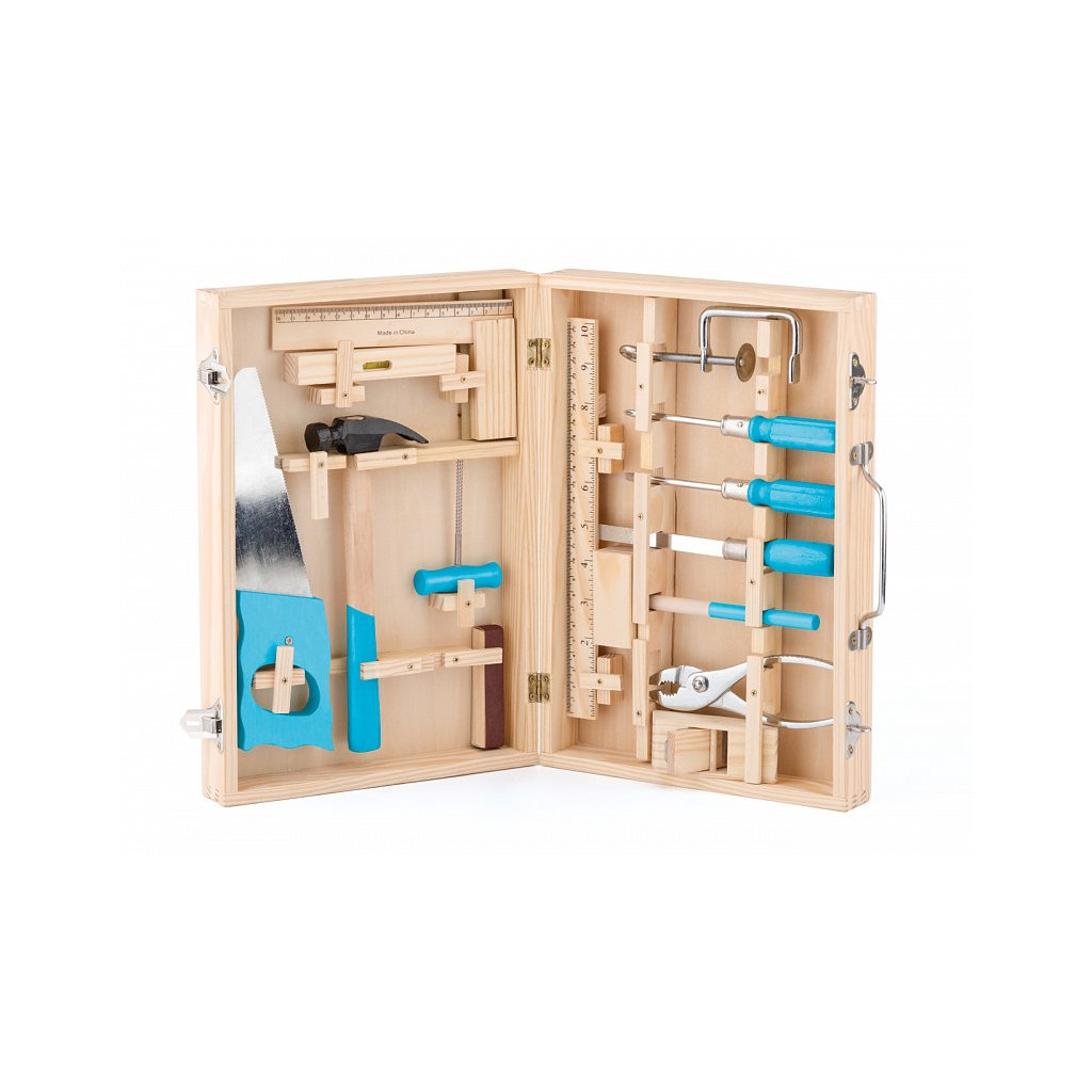 Kovové nářadí je věrnou kopií opravdového nářadí pro dospělé, je umístěno v praktickém dřevěném kufříku s dvěma kovovými přezkami a uchem pro snadné přenášení. Západky i speciální otvory uvnitř kufříku zajišťují jednotlivé kusy nářadí proti vypadnutí.
